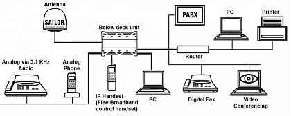 Возможно одновременное использование до 6-и линий голосовой связи с услугой Inmarsat Multi-Voice, при этом важным компонентов решения SAILOR 250 FleetBroadband является IP-телефон Thrane. Усовершенствованный автоматически настраиваемый (plug-and-play) телефон оснащается интуитивным пользовательским интерфейсом и цветным TFT-дисплеем диагональю 2,2 дюйма. В телефонном аппарате реализованы самые передовые технологии, такие как эхокомпенсация и программное подавление шума, которые обеспечивают превосходную чистоту голосовой связи.