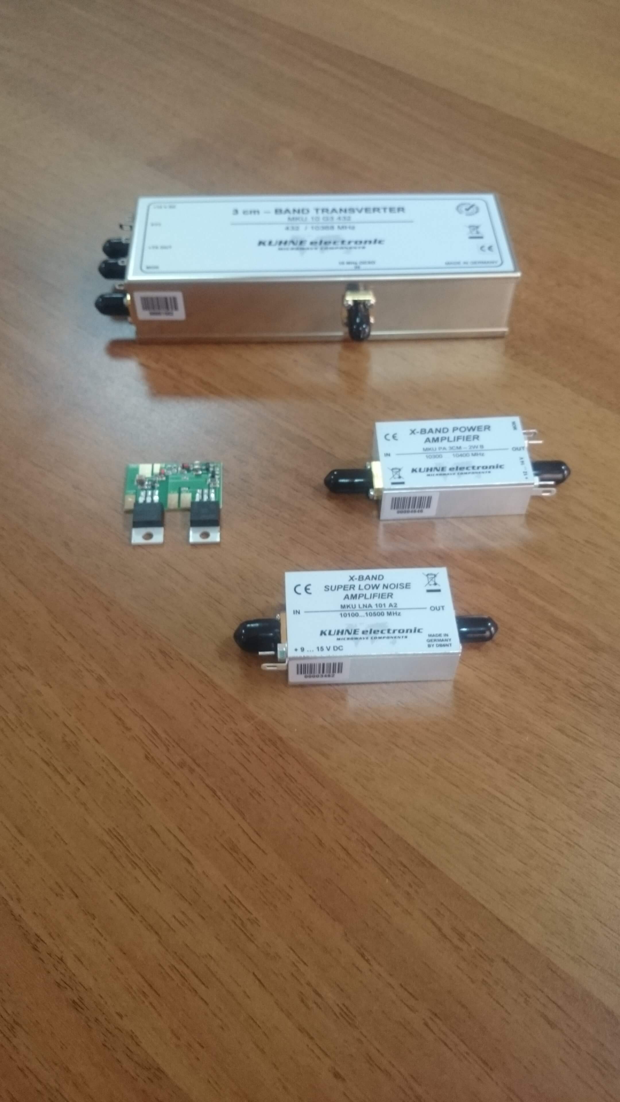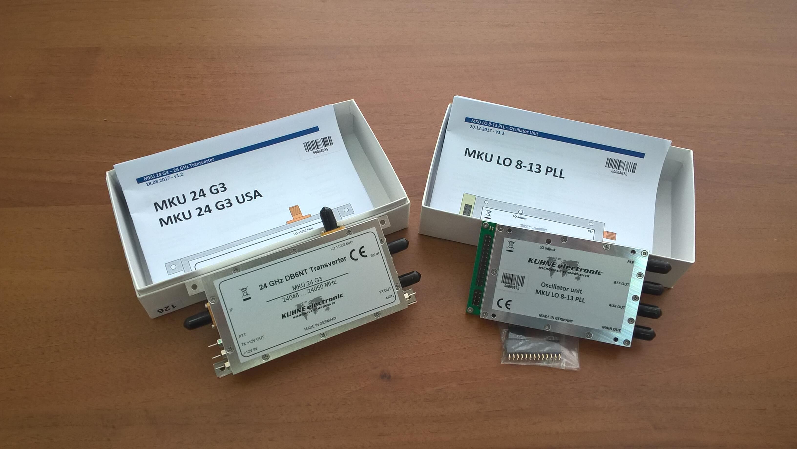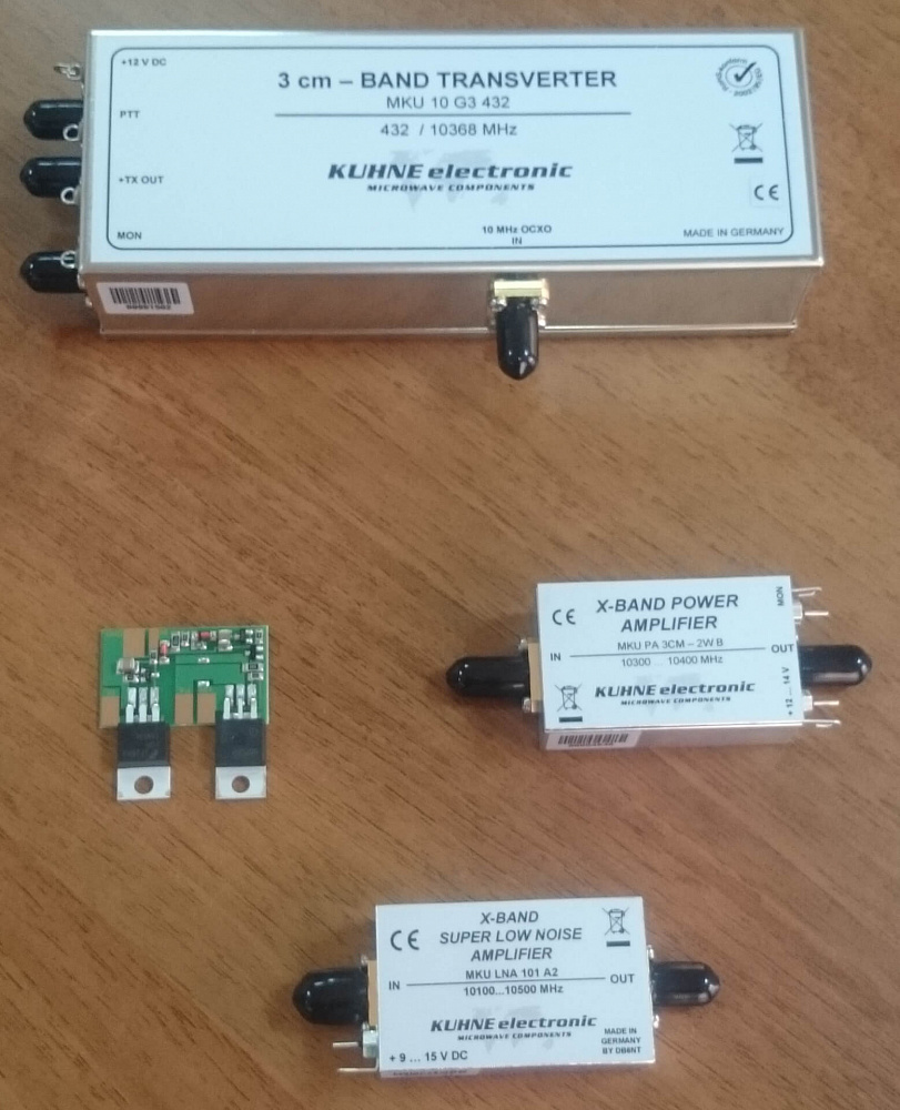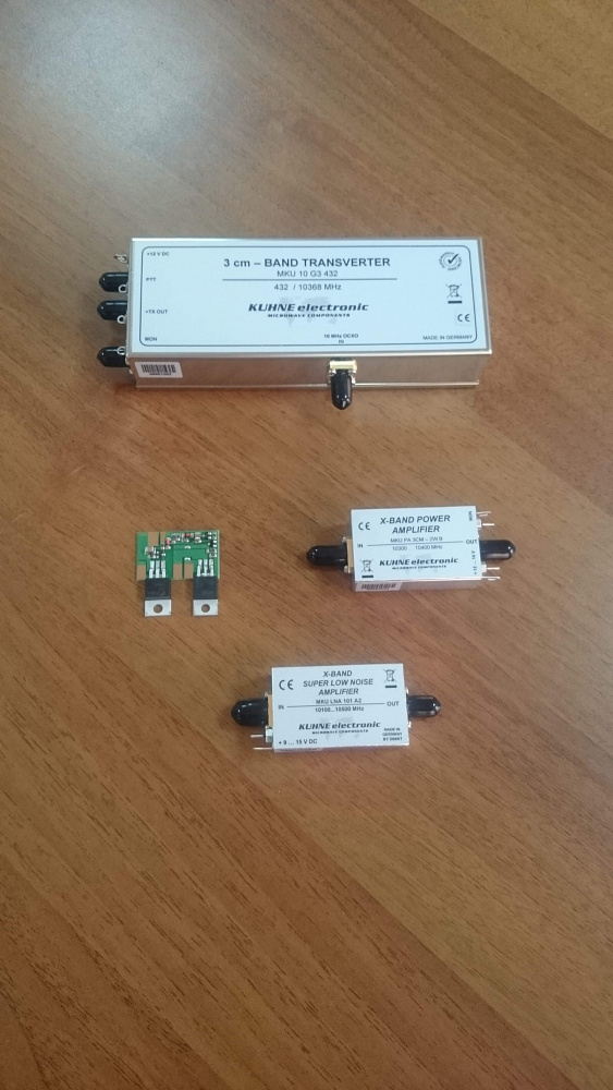 - Преобразователь частоты MKU 24 G3, Transverter 24048 … 24050 MHz. Преобразователь имеет возможность подачи внешней опорной частоты 10 МГц для достижения максимальной стабильности, а также встроенные усилитель мощности 2 Вт, режекторный фильтр. Имеется возможность регулировки усиления.